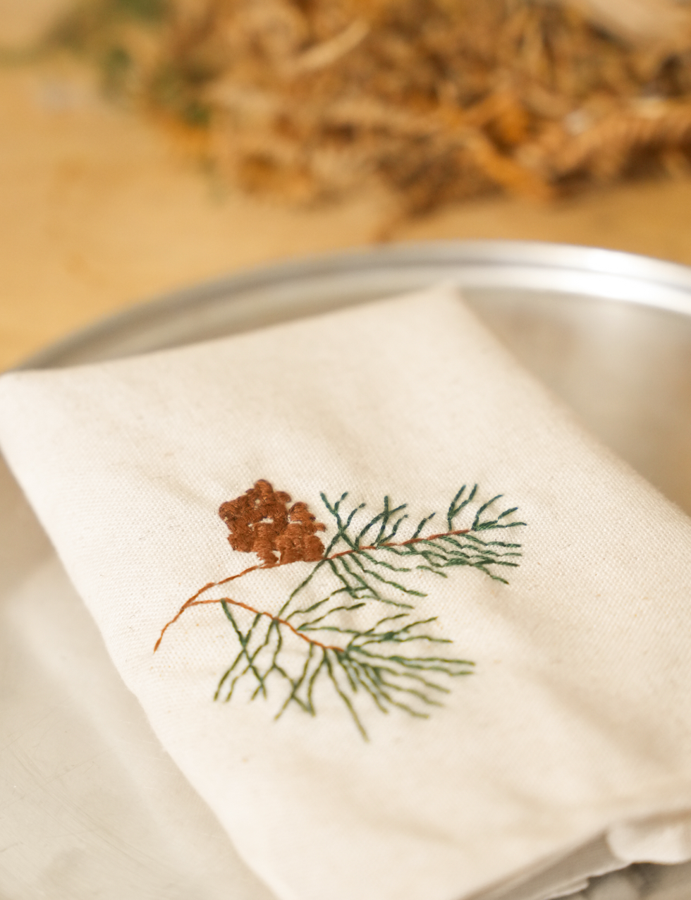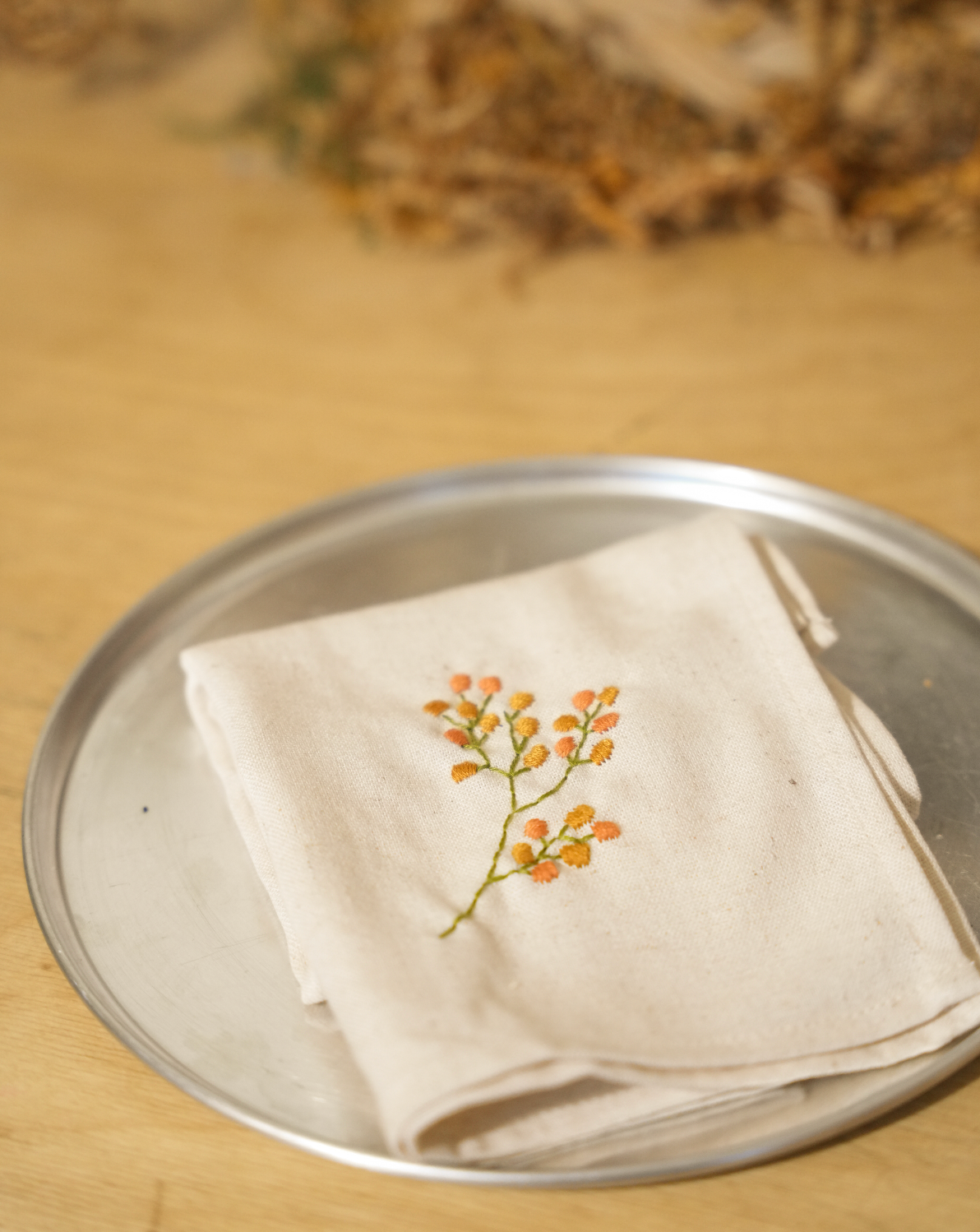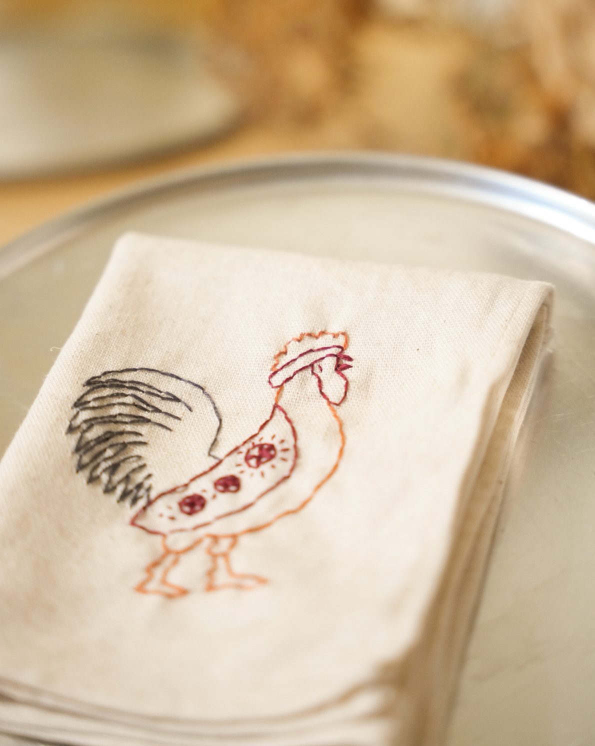 set of 4 embroidered linen napkins, in collaboration with Dar Jezzine.