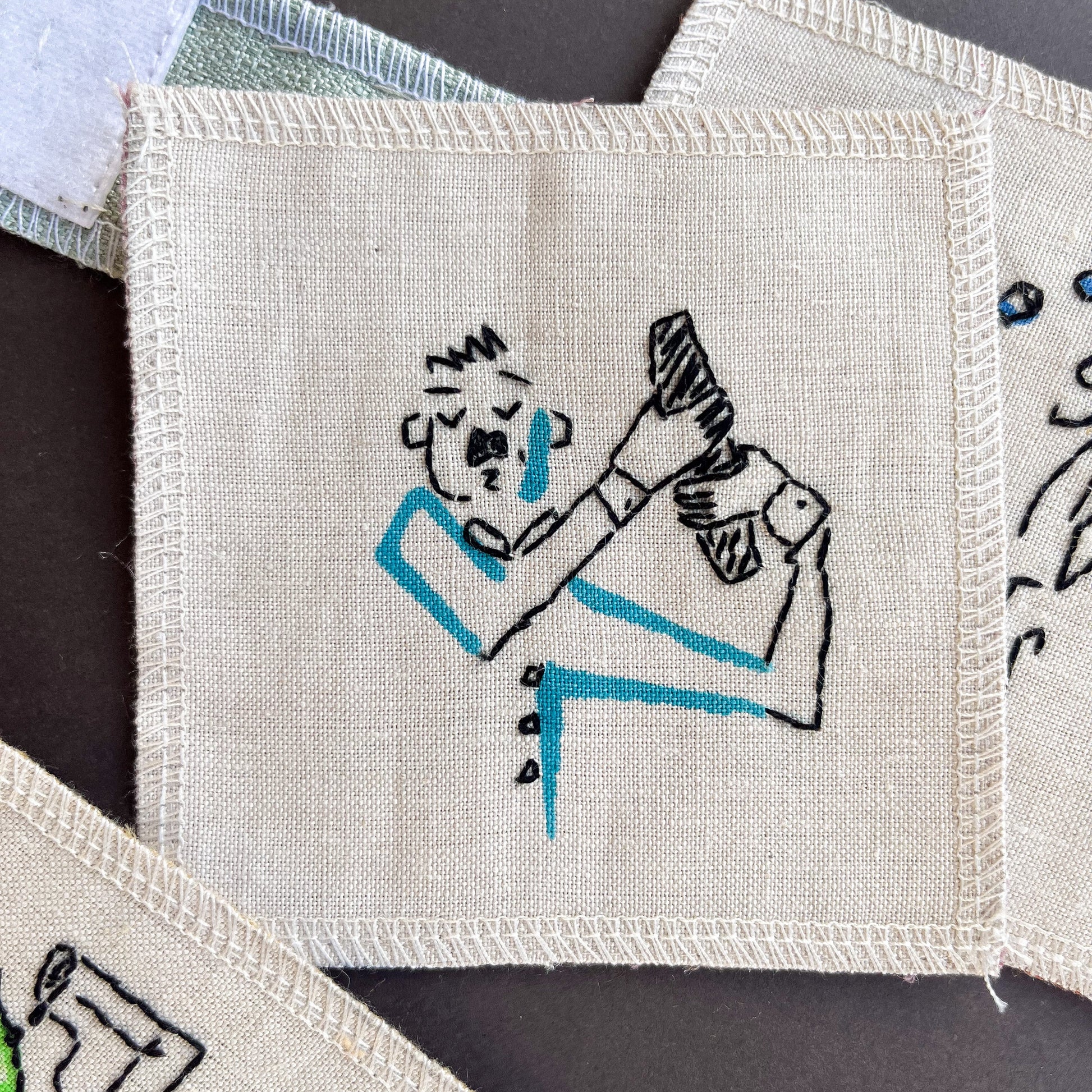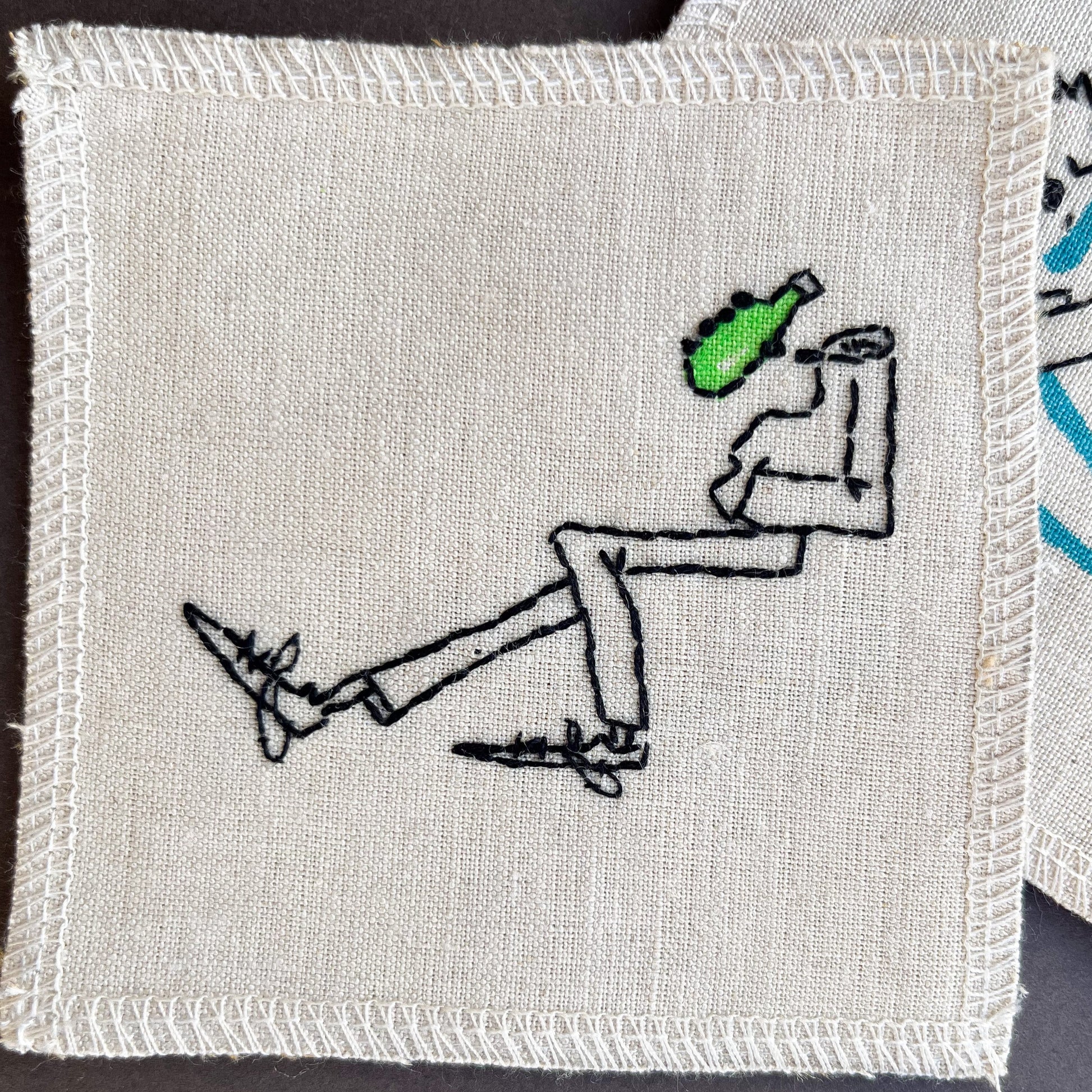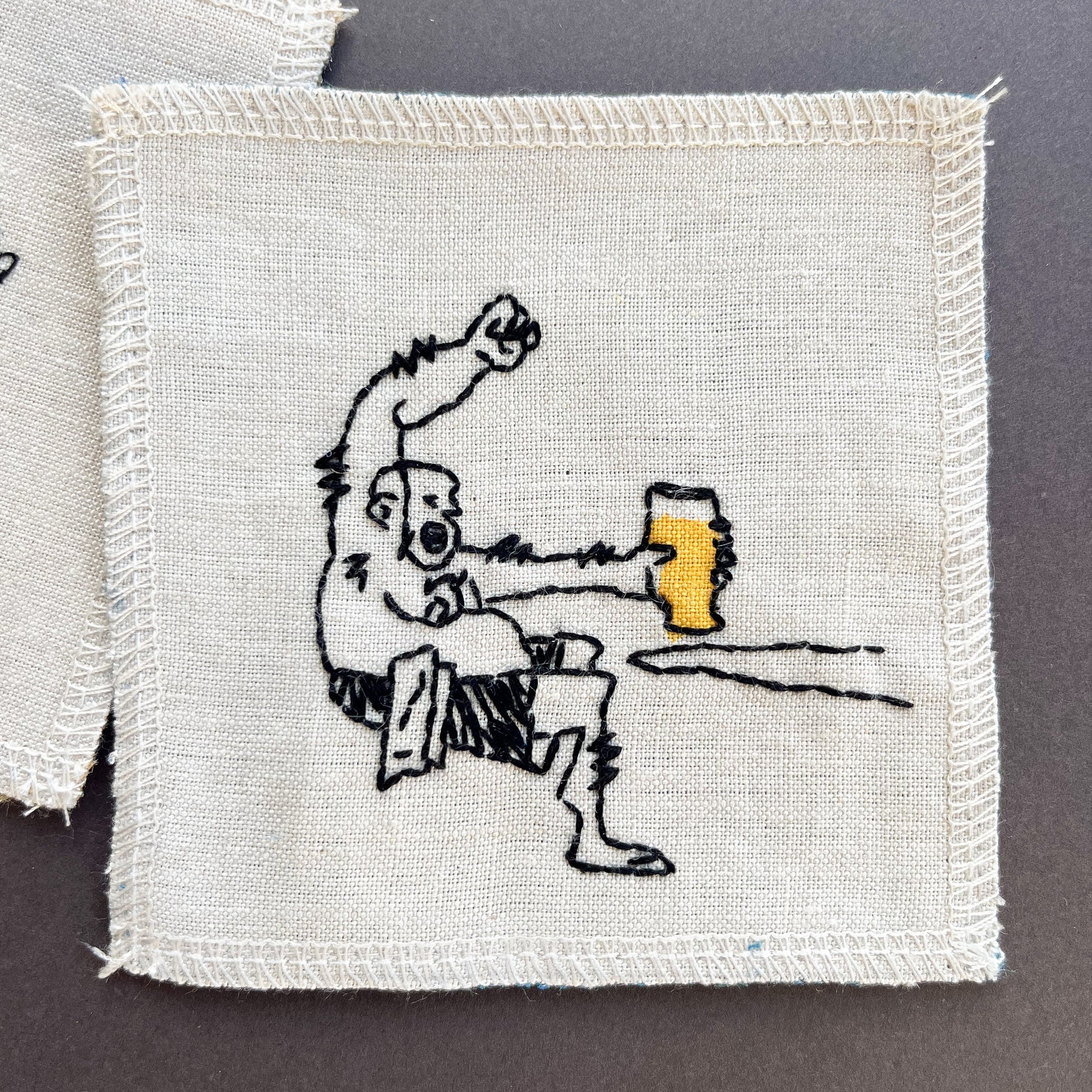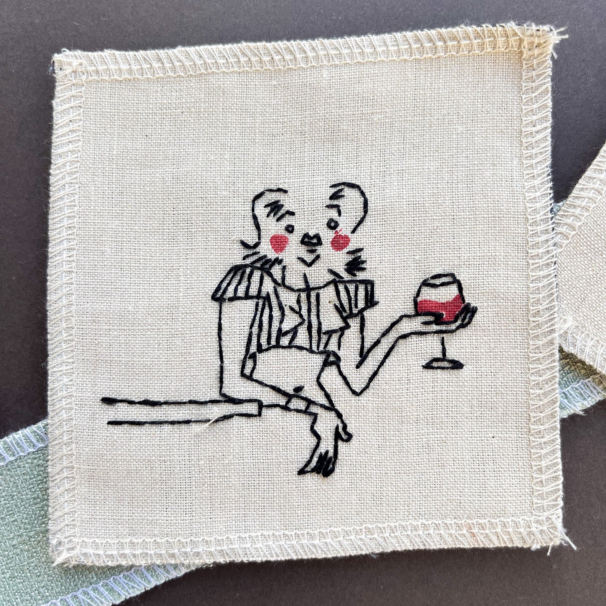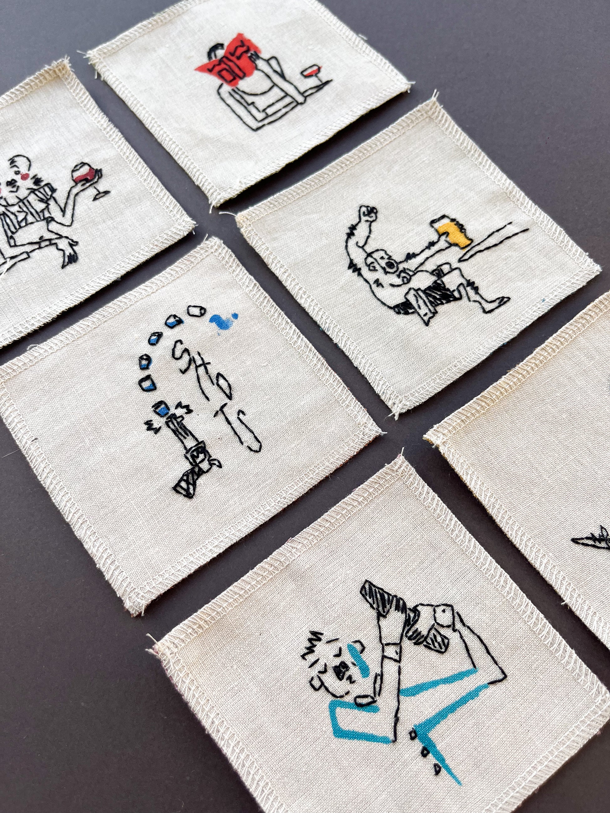 Embroidered using cotton threads and textile paint, these coasters are crafted to protect your table and spark conversation.