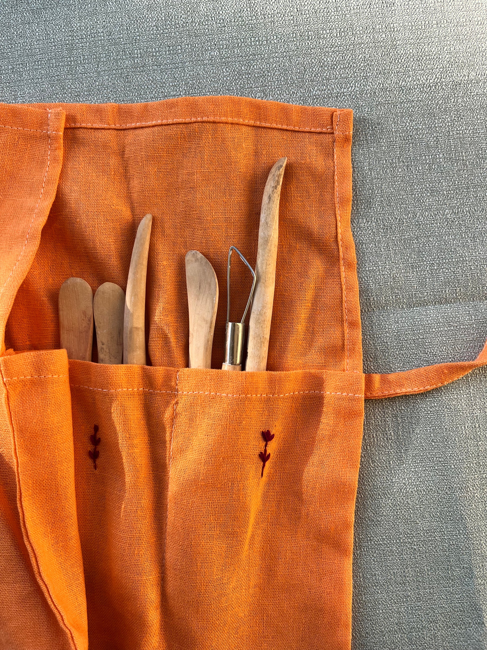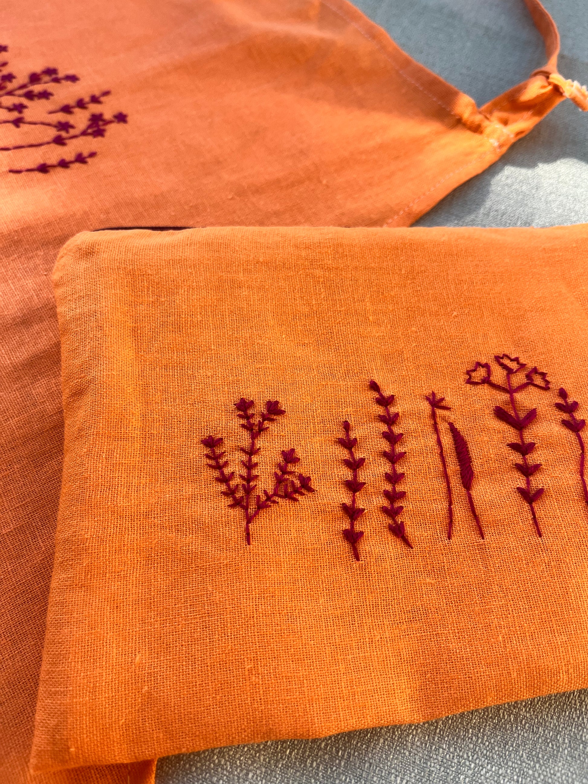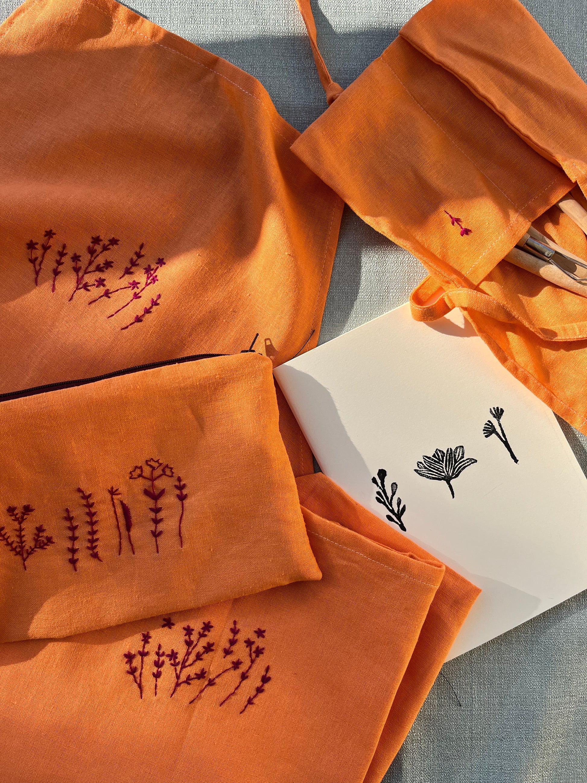 All pieces are 100% linen and hand embroidered with cotton threads.