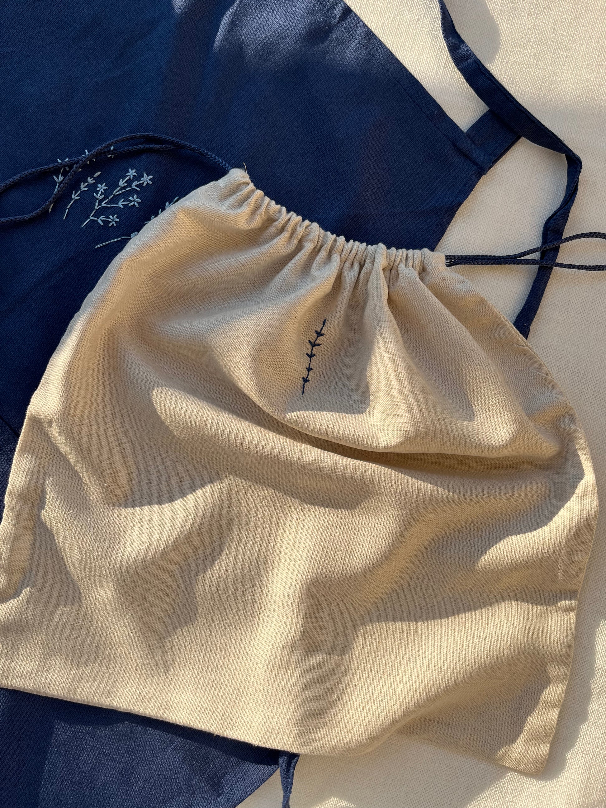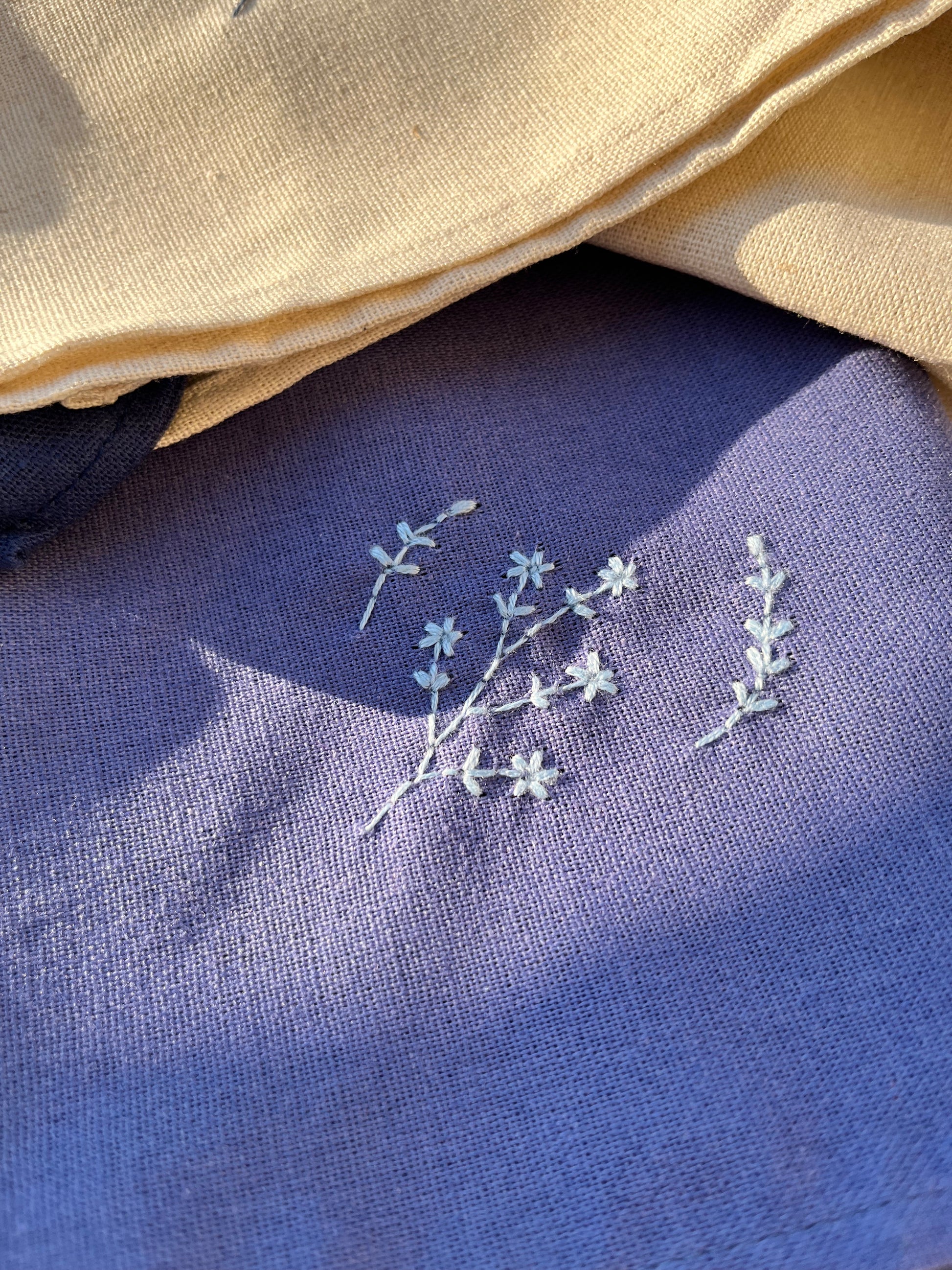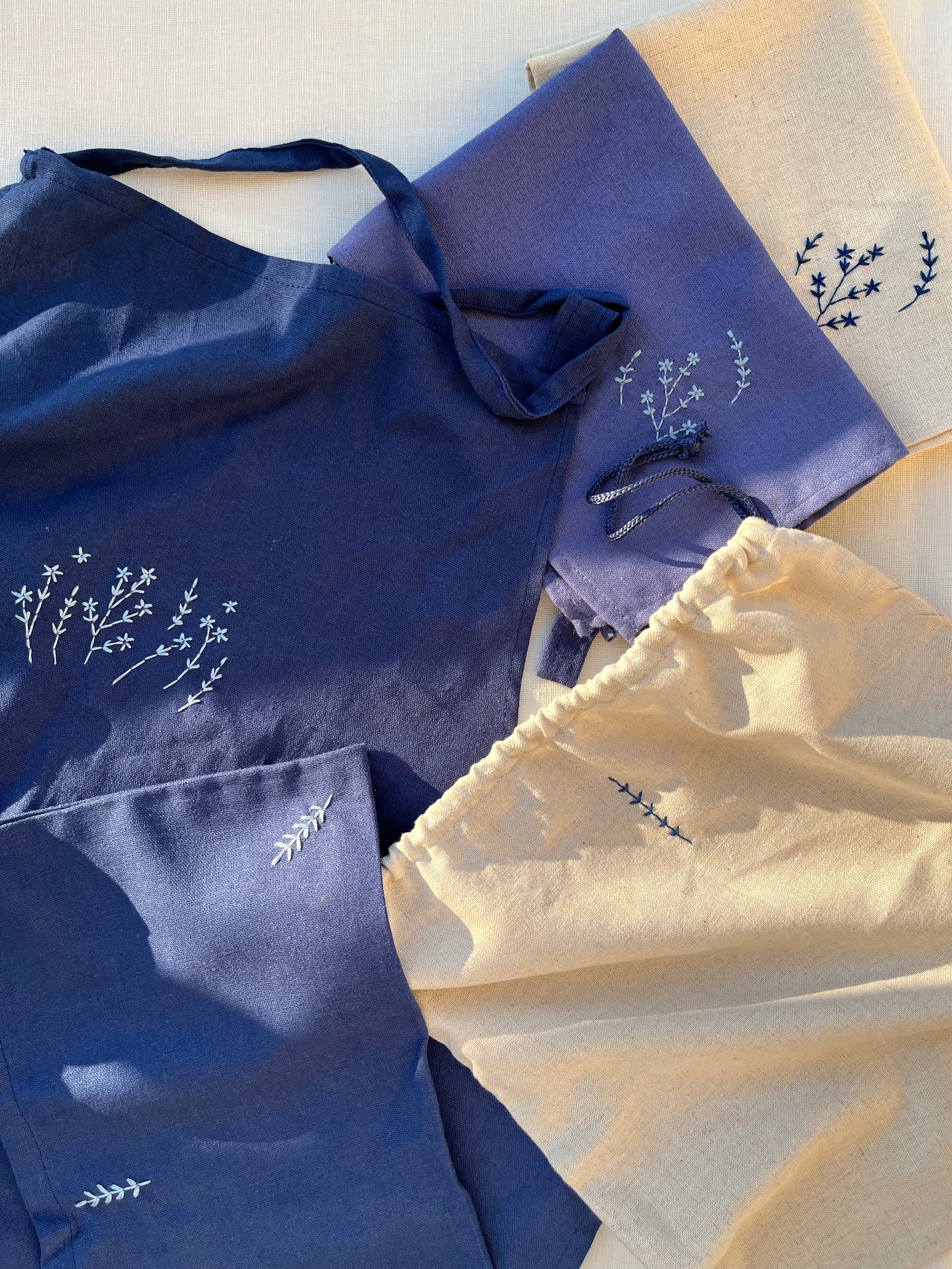 All pieces are 100% linen and hand embroidered with cotton threads.